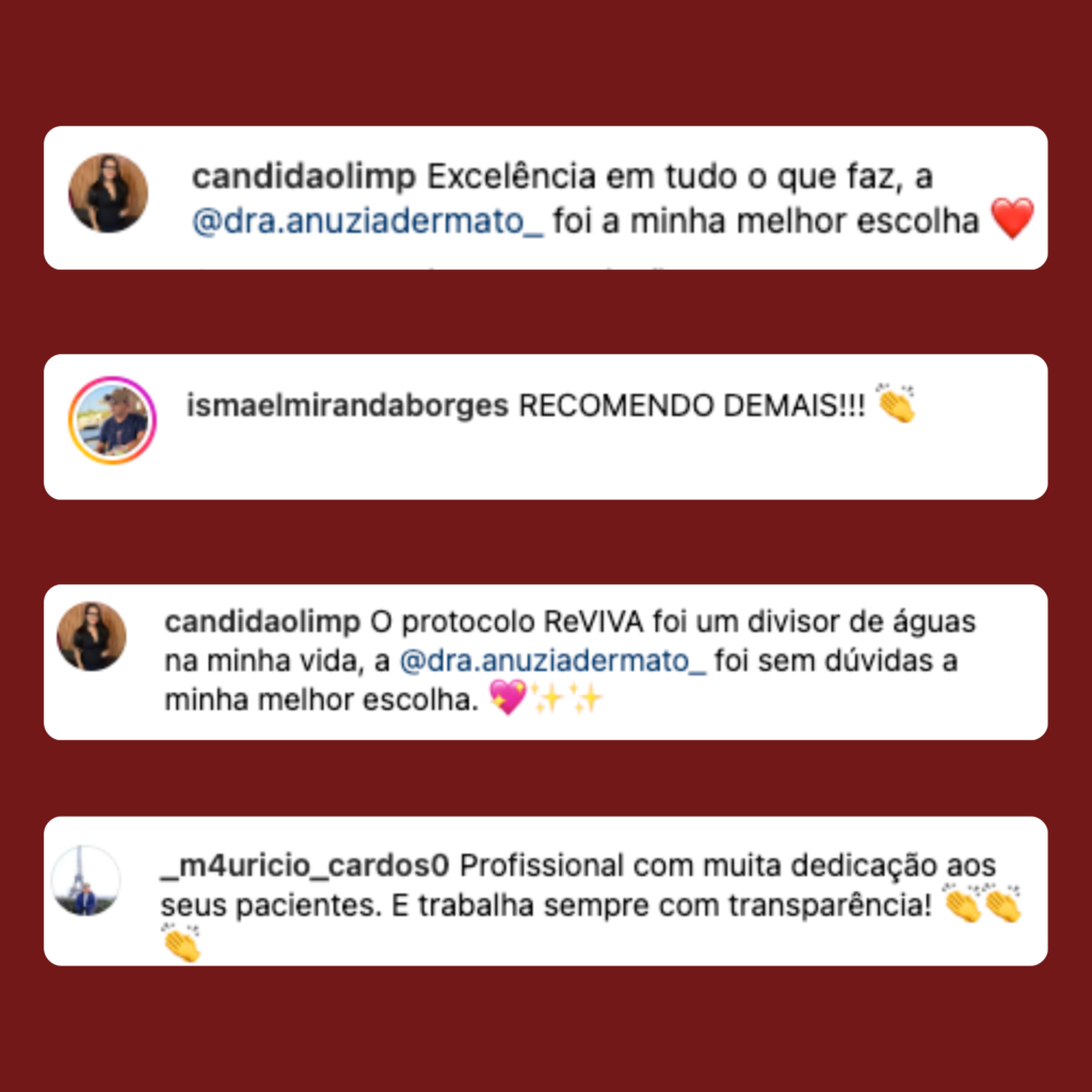 Dra. Anúzia Freitas é reconhecida por sua ética, transparência e comprometimento. Seus procedimentos são conduzidos com honestidade e respeito às características naturais de cada paciente, sempre utilizando tecnologias de ponta para garantir o melhor resultado.